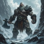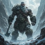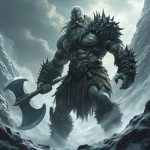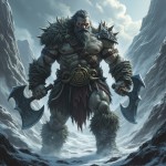 Goliath Barbarian Warrior in Mountain Pass with Double-Headed Axe