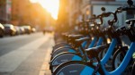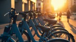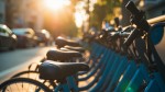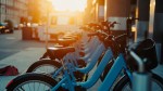 Morning Sunlight on City Bicycle Rental Parking Lot