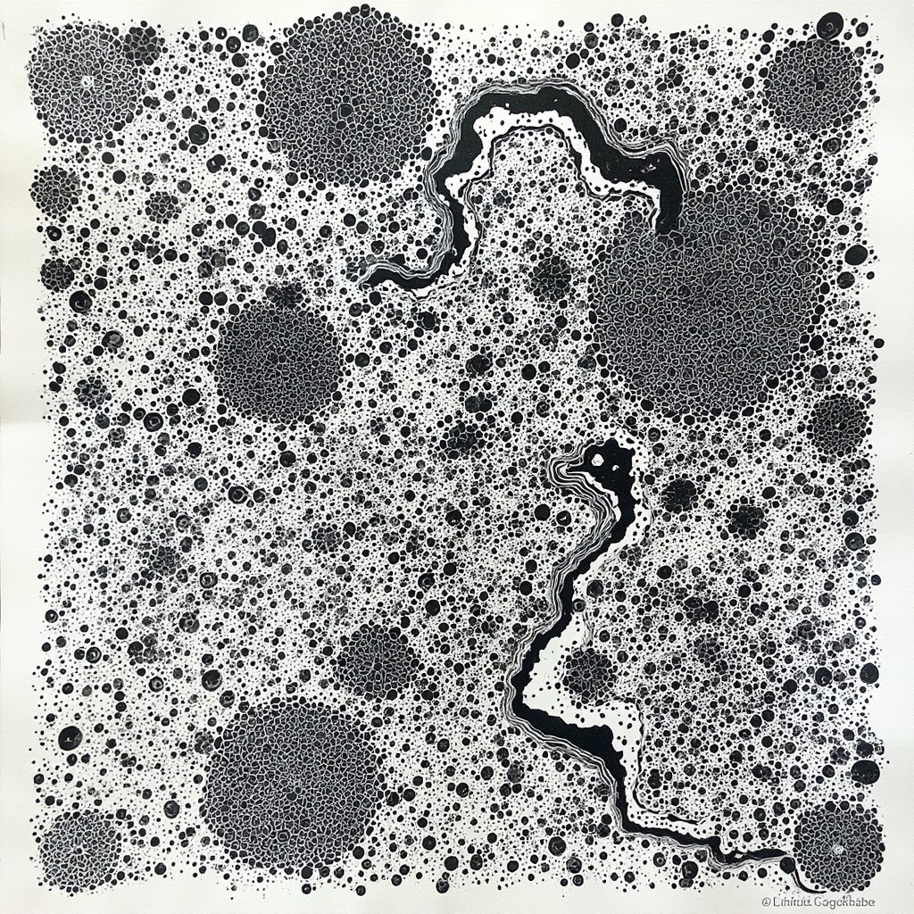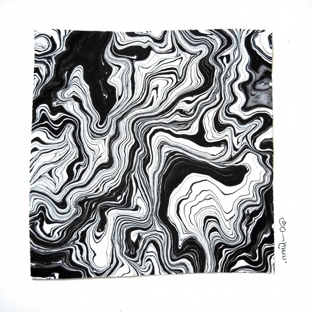 Black and White Suminagashi Art in Square Format