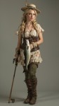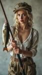 Italian Blonde Woman in Fisherman Costume Holding Fishing Rod