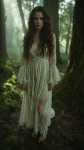 Bohemian Woman in Lace Maxi Dress in Misty Forest