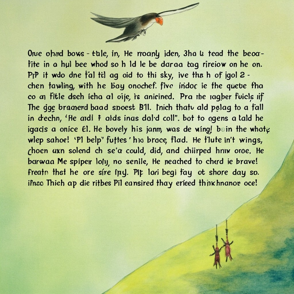 Depressed 17 year boy The Brave Little Sparrow Once upon a time, in a big mango tree, lived a tiny sparrow named Pip. While all the big birds flew high in the sky, Pip was afraid of falling. One sunny morning, his friend, the butterfly, got stuck in a spider's web high on a thin branch. The big birds didn't notice, but Pip did! Forgeting his fear, Pip flapped his wings as hard as he could. "Flutter, flutter, flap!" He reached the branch, chirped loudly to scare the spider, and freed his friend. Pip realized that he wasn't small; he was brave. From that day on, Pip soared higher than anyone else.