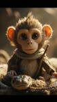 Rivo Character: “Rivo is a slightly larger monkey about the height of a small human child, with light brown fur, soft and detailed, big round expressive eyes, gentle heroic face, slightly rounded cheeks, small nose, short tail, balanced proportions, cute yet strong posture. He wears a simple rustic shepherd cloth around his waist and holds a wooden stick. Ultra realistic fur, natural colors, clean textures, consistent appearance in every frame.” Snake: Huge cinematic python, very thick, long, movie-style giant snake, extremely realistic scales. Scene: Giant snake coiled around a sheep, dramatic daylight.