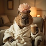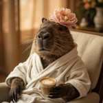 Capybara in Spa Salon with Cappuccino and Peony Flower