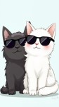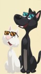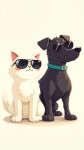 Cartoon Cat and Dog Wearing Sunglasses, One White, One Black
