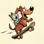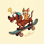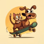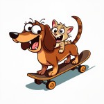 Modern Cartoon Dachshund Riding Skateboard with Shocked Cat Logo