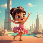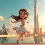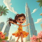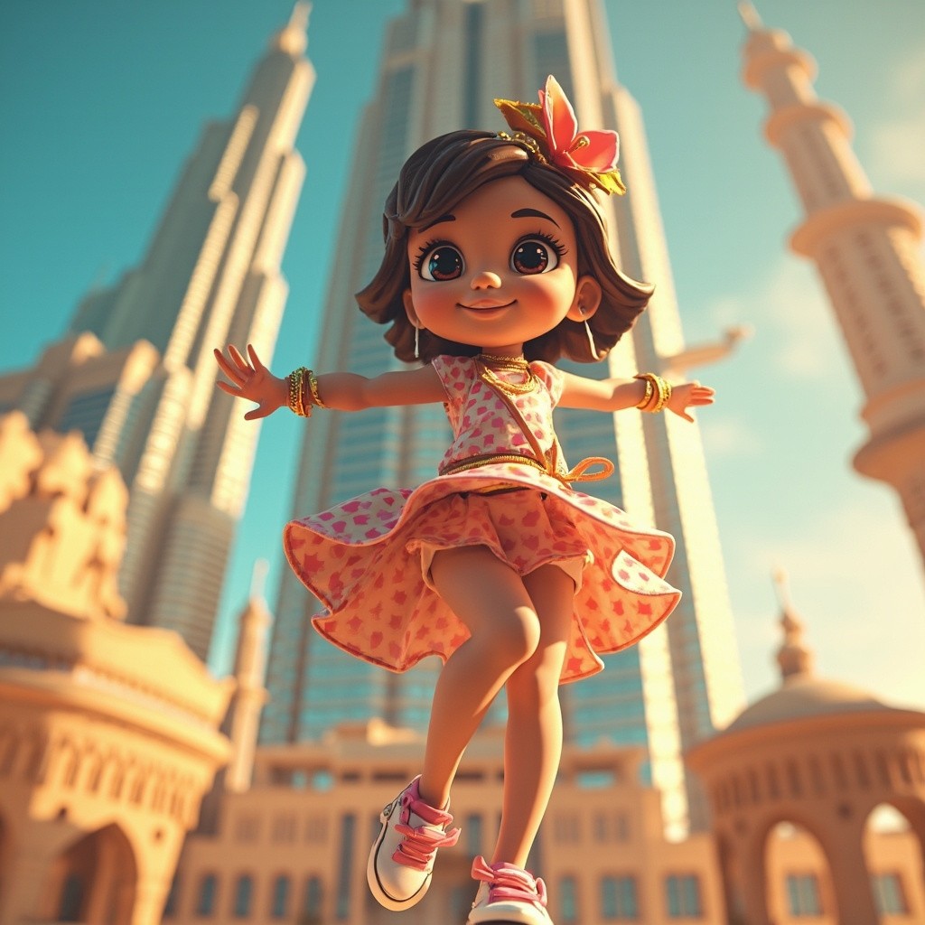 3D Cartoon Girl Dancing on Dubai Burj Khalifa