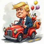 Donald Trump in Clown Car Cartoon
