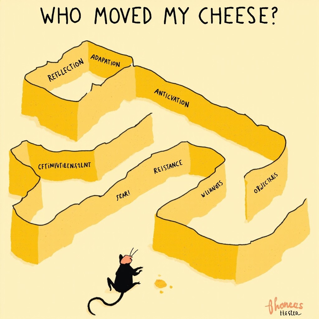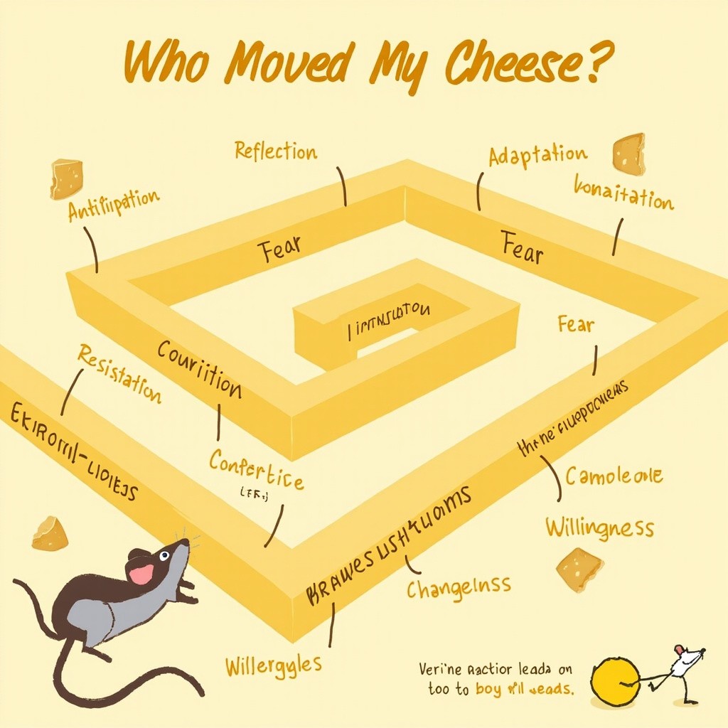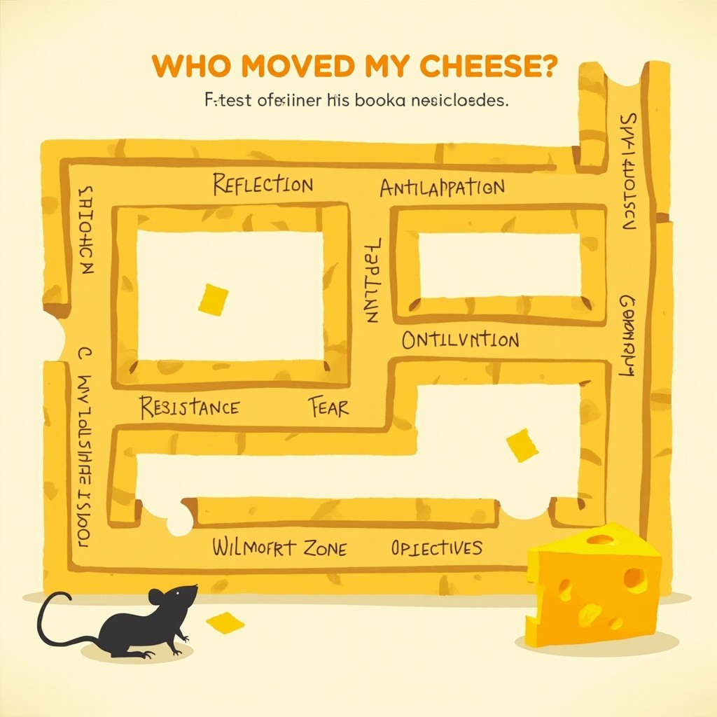 Infographic Based on 'Who Moved My Cheese' with Character Path, Cheese Bites, and Mouse Tail