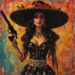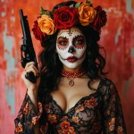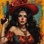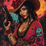 Chicano Girl in La Catrina Style with Gun