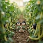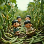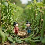 Pop Mart Style Clay Dolls Picking Long Beans in Field