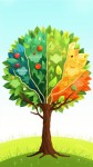 Vertical Educational Tree Illustration Showing Five Disciplines on Sunny Meadow Background