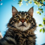 Close-Up Shot of Astonished Tabby Cat with Distorted Whiskers Against Blue Sky