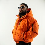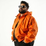 Confident Indonesian Gen Z Male Model in Orange Jacket and Black Sunglasses