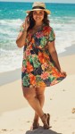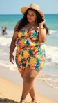 Confident Plus-Size Model in Tropical Resort Wear at Beachside