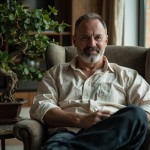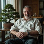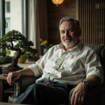 Confident Middle-aged Male Psychologist in Modern Interior with Bonsai Tree