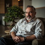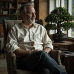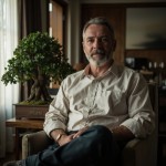 Middle-Aged Psychologist Seated Near Bonsai Tree in Modern Interior