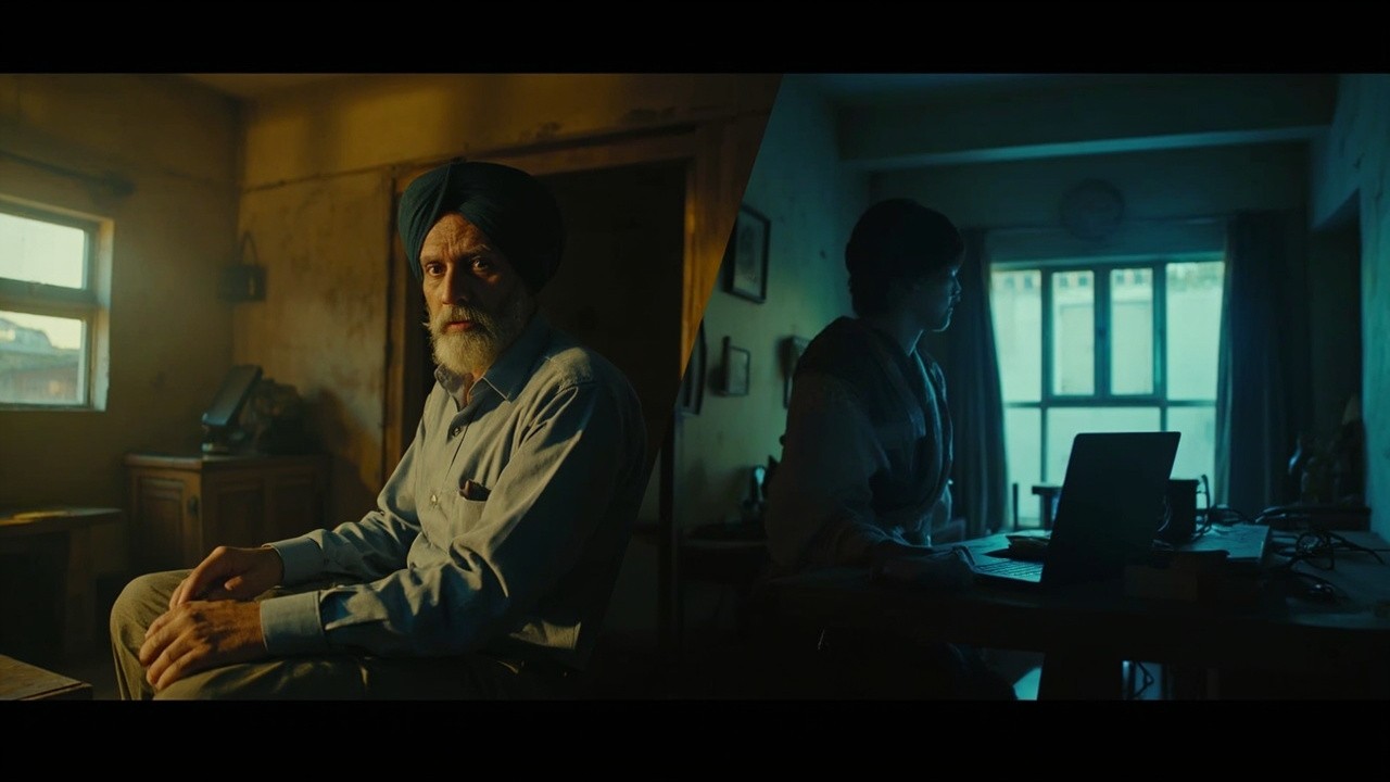 Contrasting Lifestyles: Indian Government Worker and Corporate Employee in Split Screen
