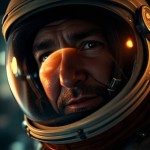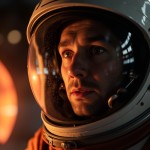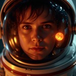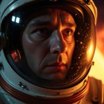 Close-Up Cosmonaut Helmet Reflection of Fiery Venus Glow