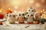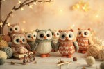 Knitted Owl Toys with Yarn Balls and Craft Tools on Wooden Surface Header