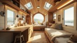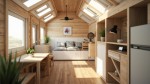 Compact Tiny House Interior with Smart Furniture and Skylight