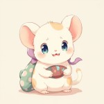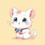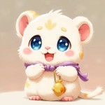 Visual Description: Small and soft body, resembling a tiny hamster or kitten. Large, shiny eyes in sky blue or violet, expressing innocence and excitement. Extremely soft fur, mostly white with subtle pink or pale yellow spots. Big, slightly pointed ears that move in response to emotions. Thin, long tail that wraps around the body when feeling shy. Slightly blushed cheeks at all times, adding a shy and sweet touch. Very expressive facial features (sadness, joy, surprise), shown in an exaggerated and adorable style like in Ghibli or Sanrio animations. 🎀 Accessories: A silky ribbon around the neck (pink or purple). A small bag or handheld toy, usually shaped like a fish or heart.