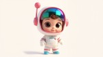 3D Baby Astronaut in White Suit and Pastel Helmet