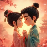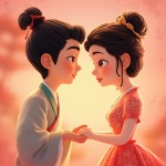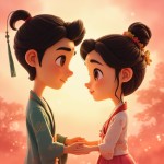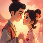 Cartoon Lovers Holding Hands Close-Up on Pink Background