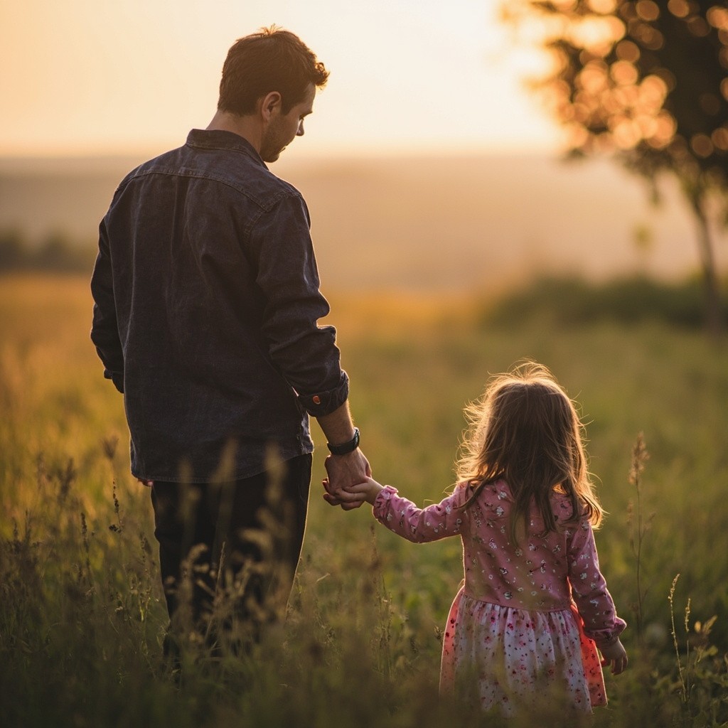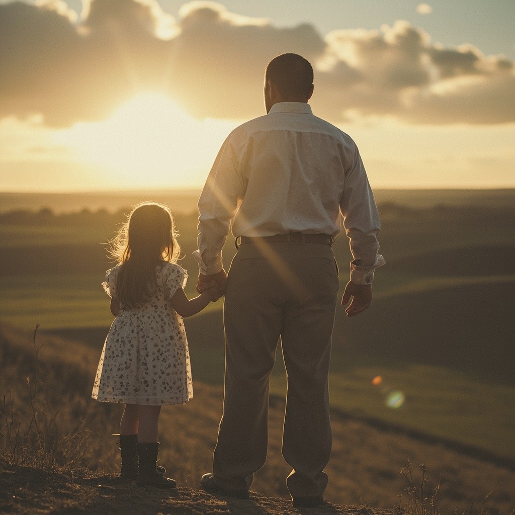 Father's Silhouette with Little Girl