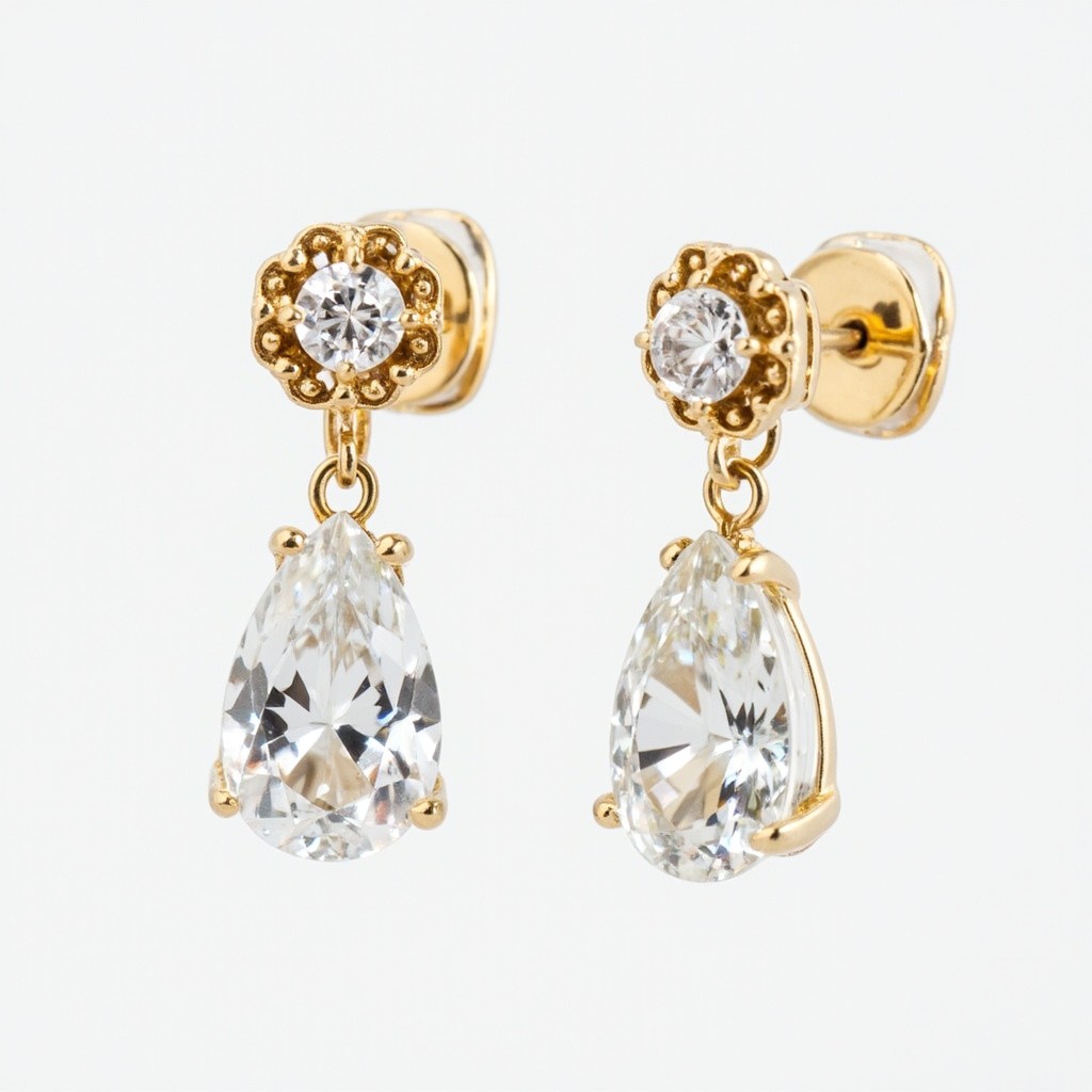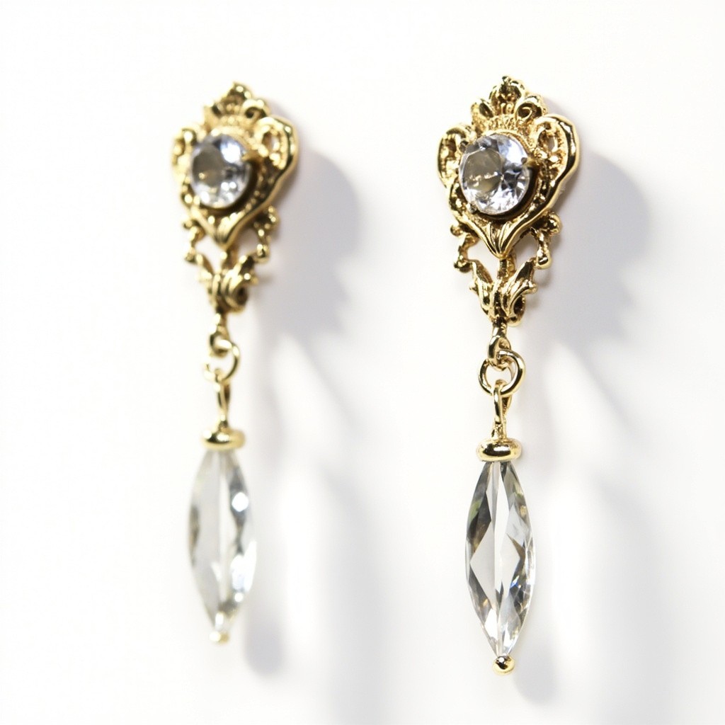Close-Up of Vintage Diamond Earrings on Gold Base