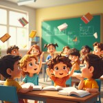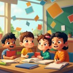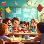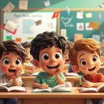 Diverse Animated Kids Learning in Colorful Virtual Classroom