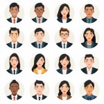 Diverse Professional User Avatar Collection in Vector Illustration Style