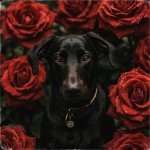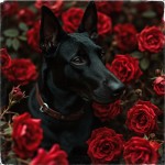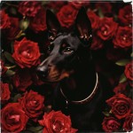Doberman Sitting Among Dark Scarlet Roses Music Cover