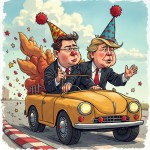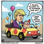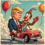 Cartoon of Donald Trump and Elon Musk in Clown Car