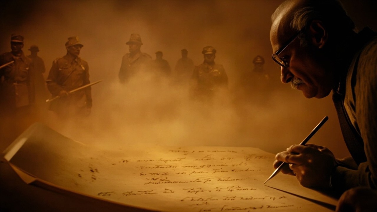 Sepia-Toned Image of Dr. B.R. Ambedkar Writing Constitution of India
