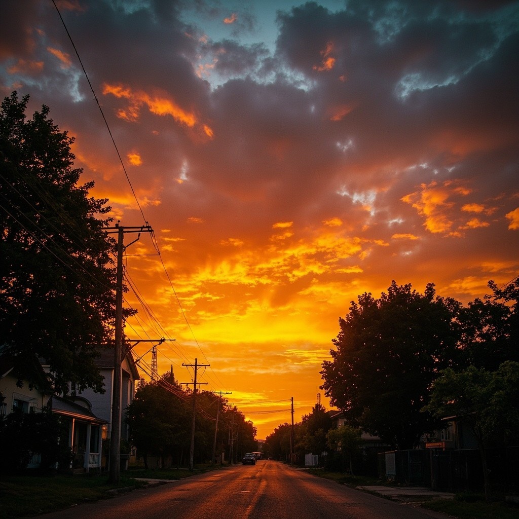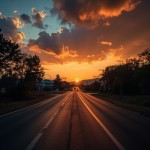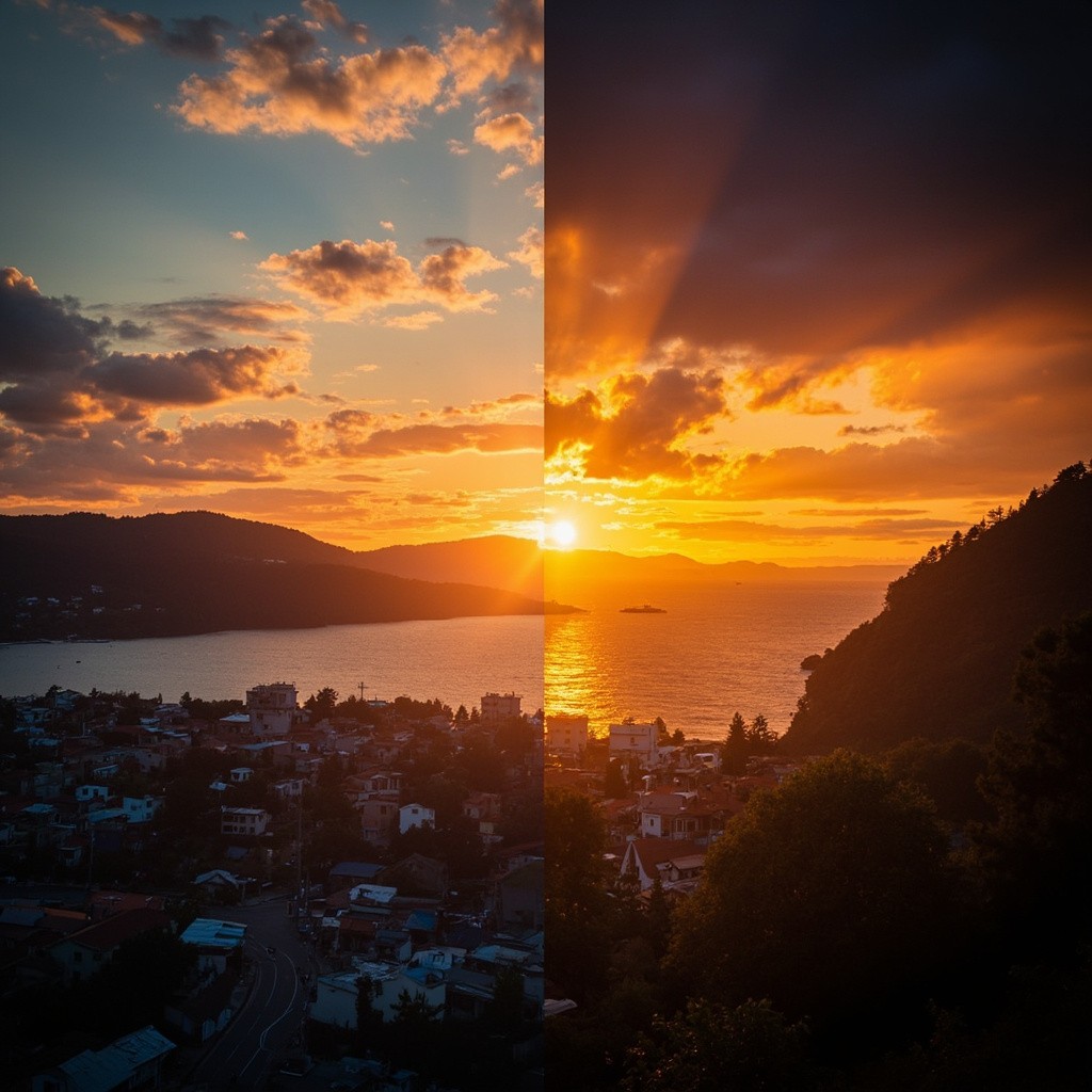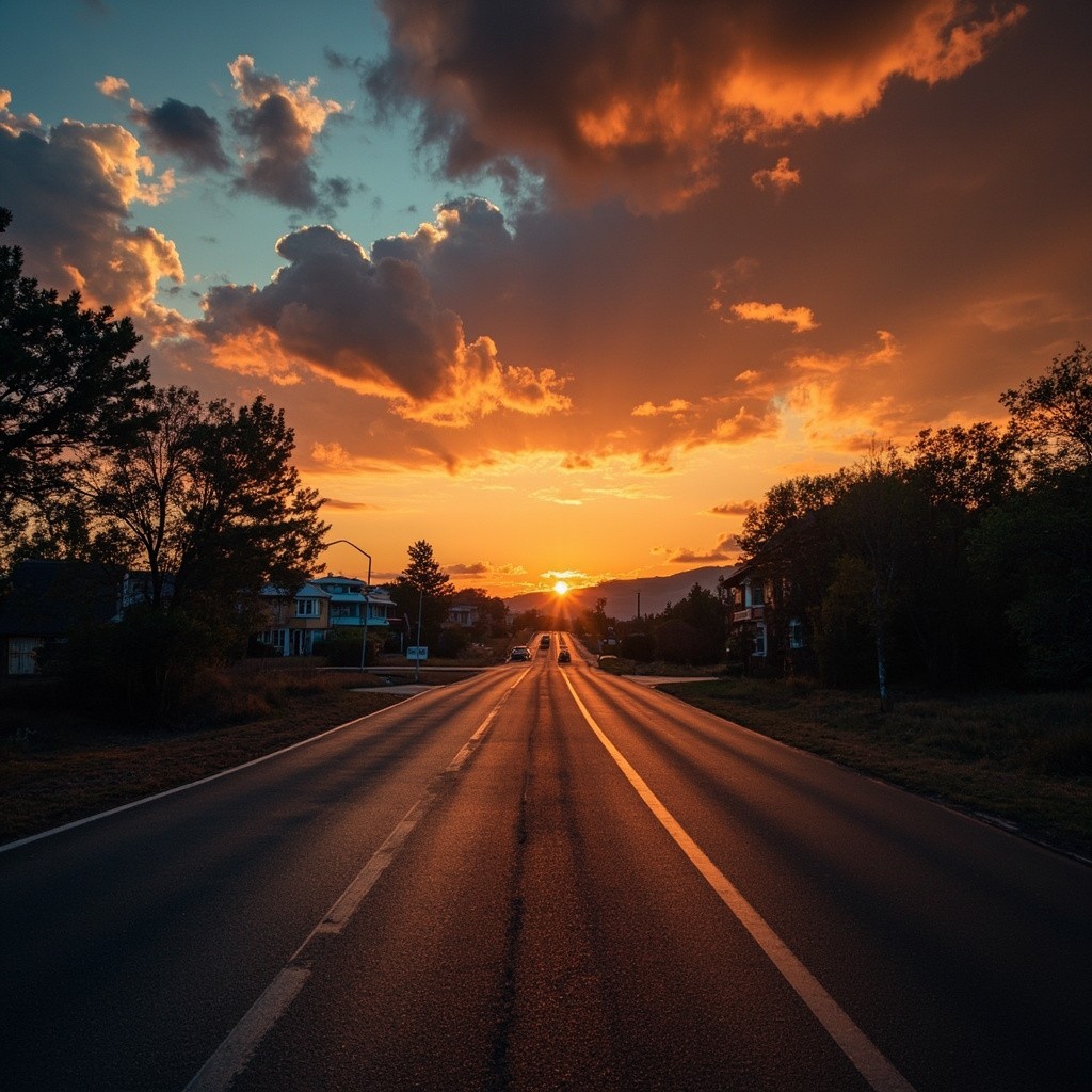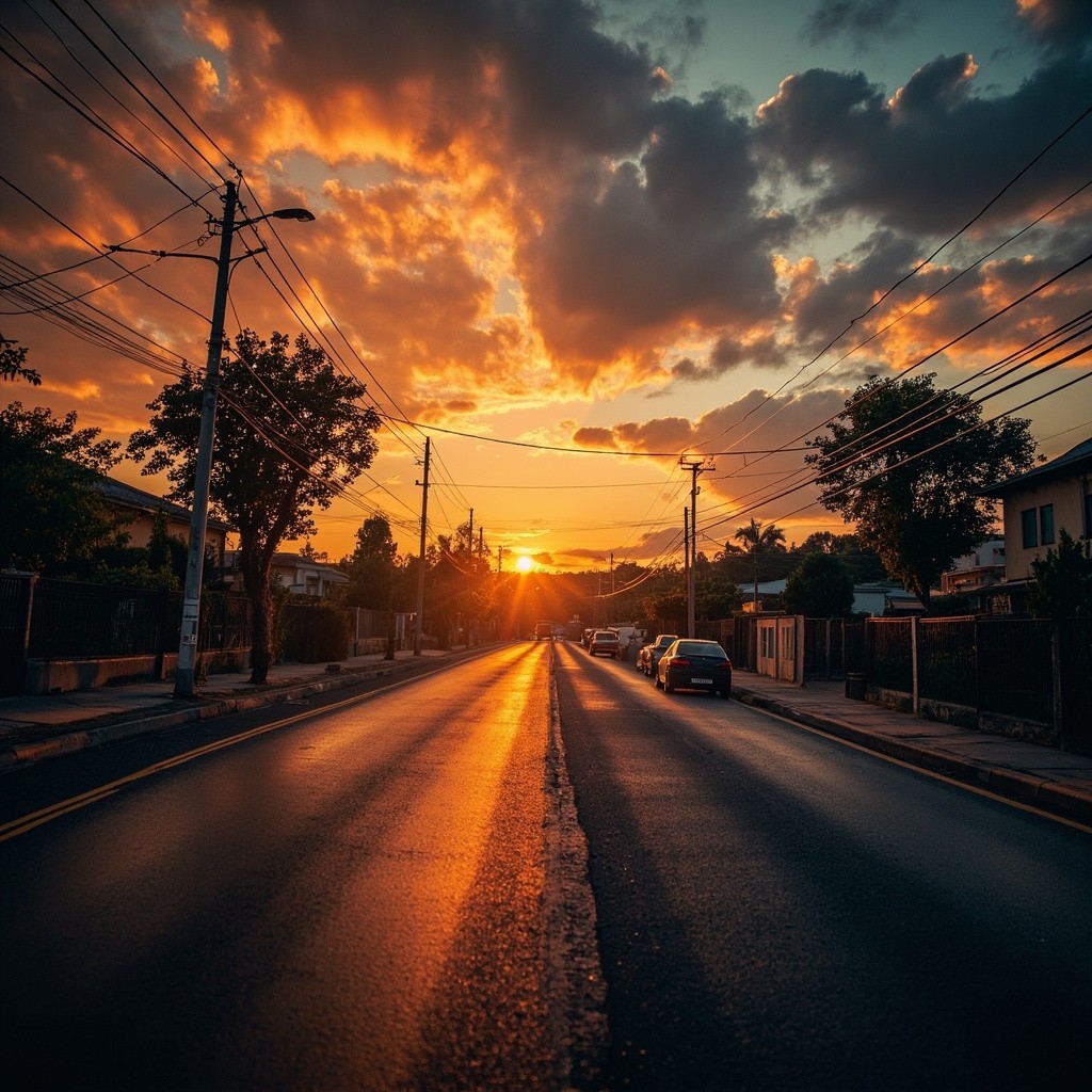 Transform this image into a dramatic sunset HDR style while preserving 100% of the original content. Do NOT change, add, remove, replace, or distort any object, subject, animal, person, building, tree, road, shadow, reflection, or background. Maintain the exact same: composition framing perspective w.compcation.foming camera angle subject positions shapes and proportions Colors must look realistic, not oversaturated, not artificial. No fantasy effects, no extra clouds, no extra sun, no lens flares, no fog, no rain unless already present. This is a strict color and lighting transformation only. Photorealistic sunset HDR edit. Original image must remain perfectly recognizable