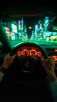 Cyberpunk Tokyo Street from Car Cockpit Perspective at Night