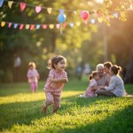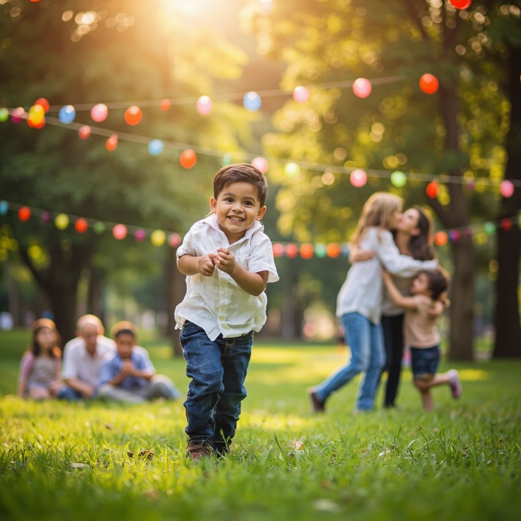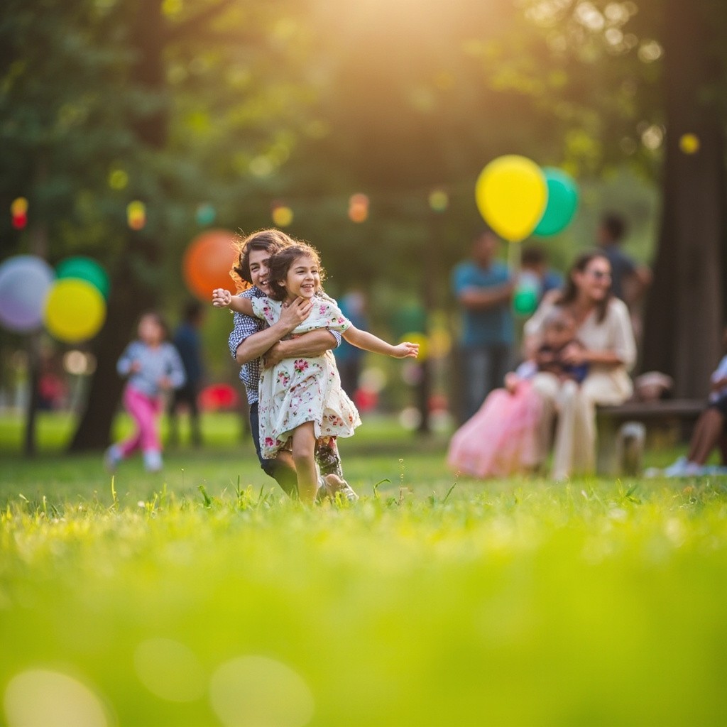 Beautiful Eid Morning in Park with Colorful Lights and Happy Families