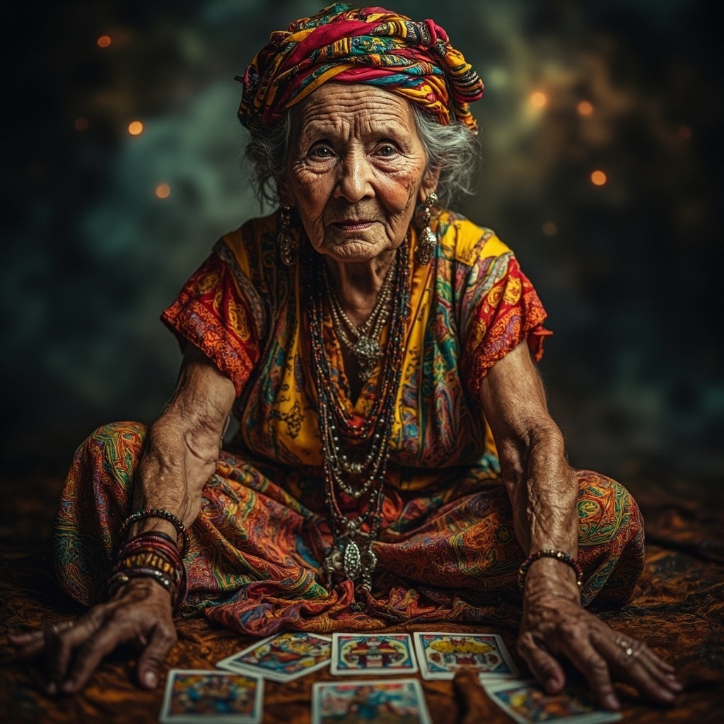 Elderly Brazilian Fortune Teller in Traditional Outfit