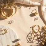Luxury Artificial Jewelry Collection on Neutral Fabric Background