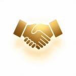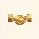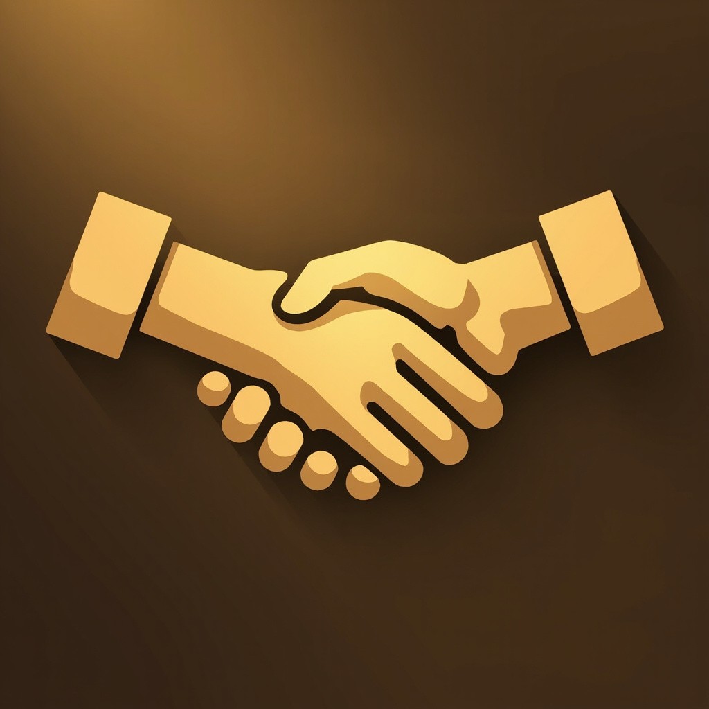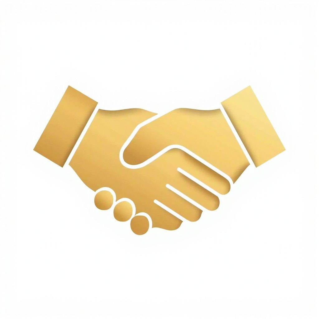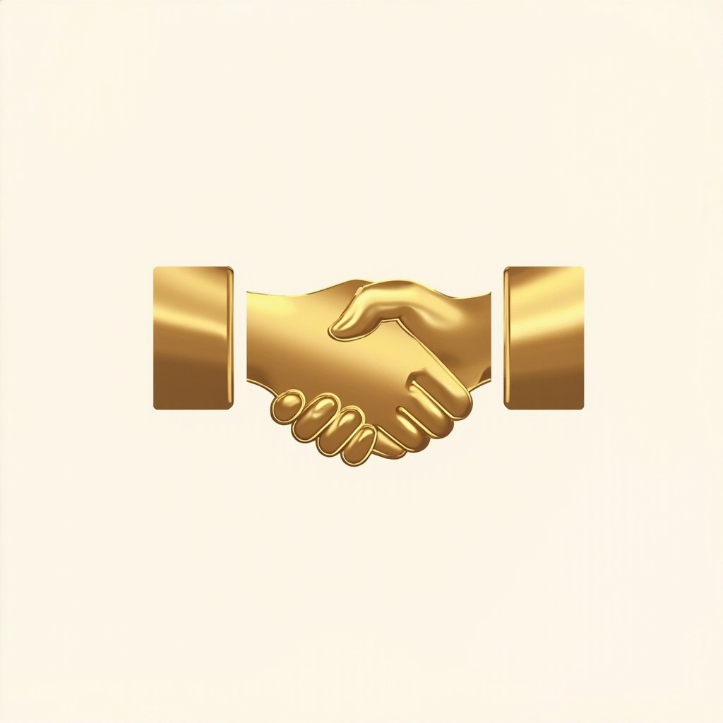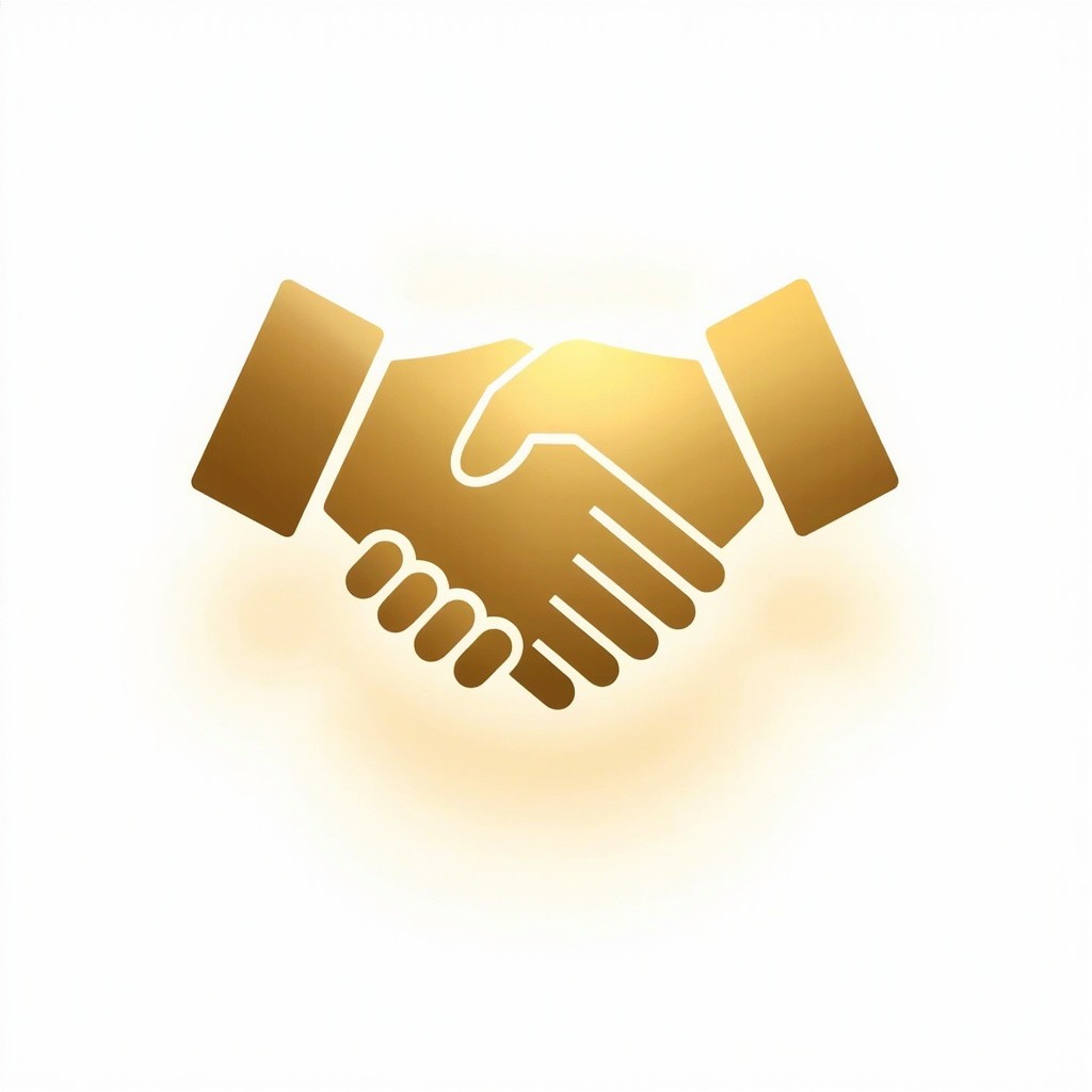 Elegant Handshake Icon with Metallic Gold Gradient on Transparent Background