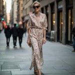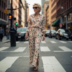 Stylish Woman Over 40 with Short Blonde Hair and Floral Outfit in City