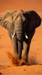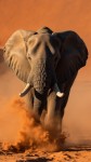 Backlit African Elephant Kicking Dust, Orange-Red Desert Background
