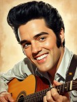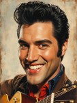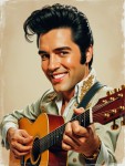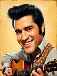 Elvis Presley Playing Guitar Caricature Portrait with Smile