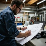Engineer Designing Heating Systems at Desk