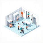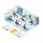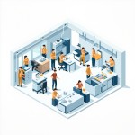 Isometric Factory Floor Illustration with Satisfied Workers and Ergonomic Chairs