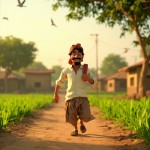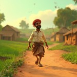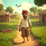 3D Cartoon Indian Village Morning Scene with Happy Farmer Raghav