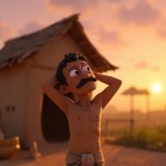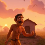 3D Cartoon of Middle-Aged Indian Farmer in Village at Sunrise