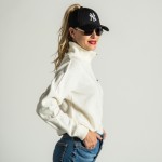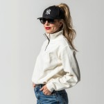 Fashion Model with Ponytail, Sunglasses, and NY Yankees Cap Full Body Image