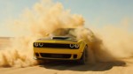 Yellow Dodge Challenger Demon 170 Moving Fast in Desert